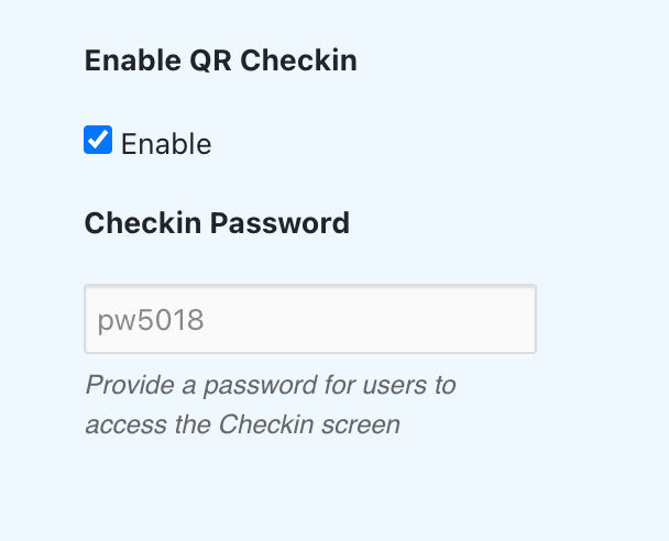 Checkin Password – set this to allow access to the checkin page