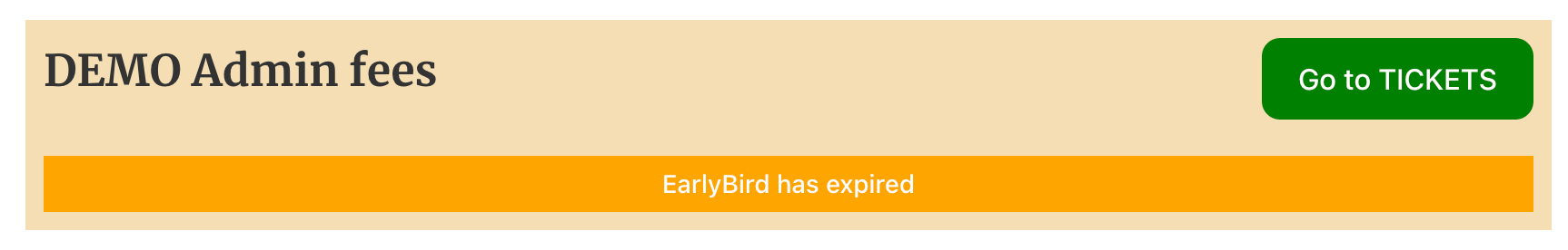 A countdown is displayed on the event page telling buyers how much time is left to buy tickets at the discounted price. The EarlyBird messages for how much time is left and Expired are customisable in the event editor.
