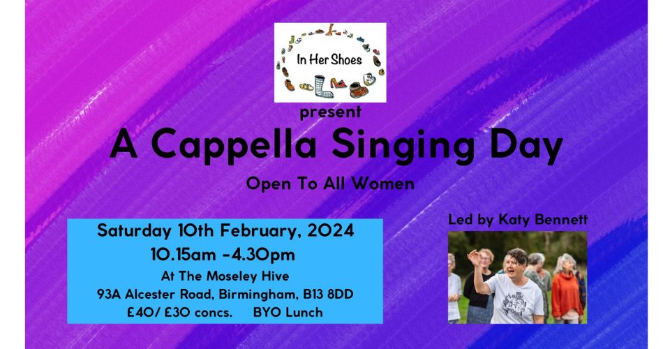 In Her Shoes present a full-day a cappella singing workshop open to all women, led by experienced singer, songwriter, choir and workshop-leader Katy Bennett.