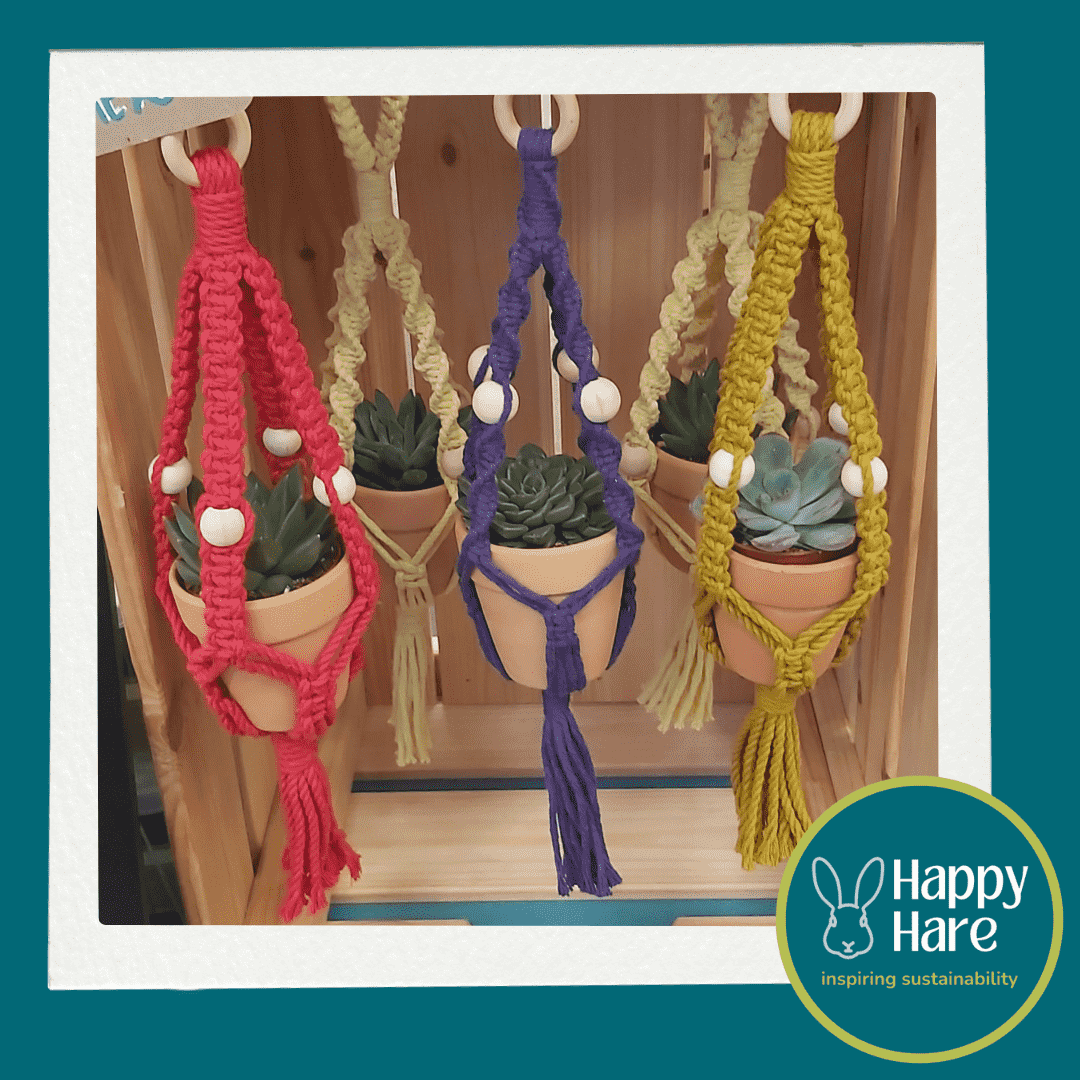 Create your own unique, mini macramé plant hanger using recycled t-shirt yarn. The perfect way to add a little greenery to even the smallest of spaces.