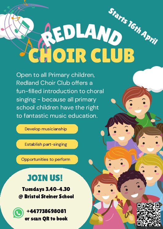 Redland Choir Club offers a fun-filled introduction to choral singing, after school every Tuesday for anyone aged 5-11.